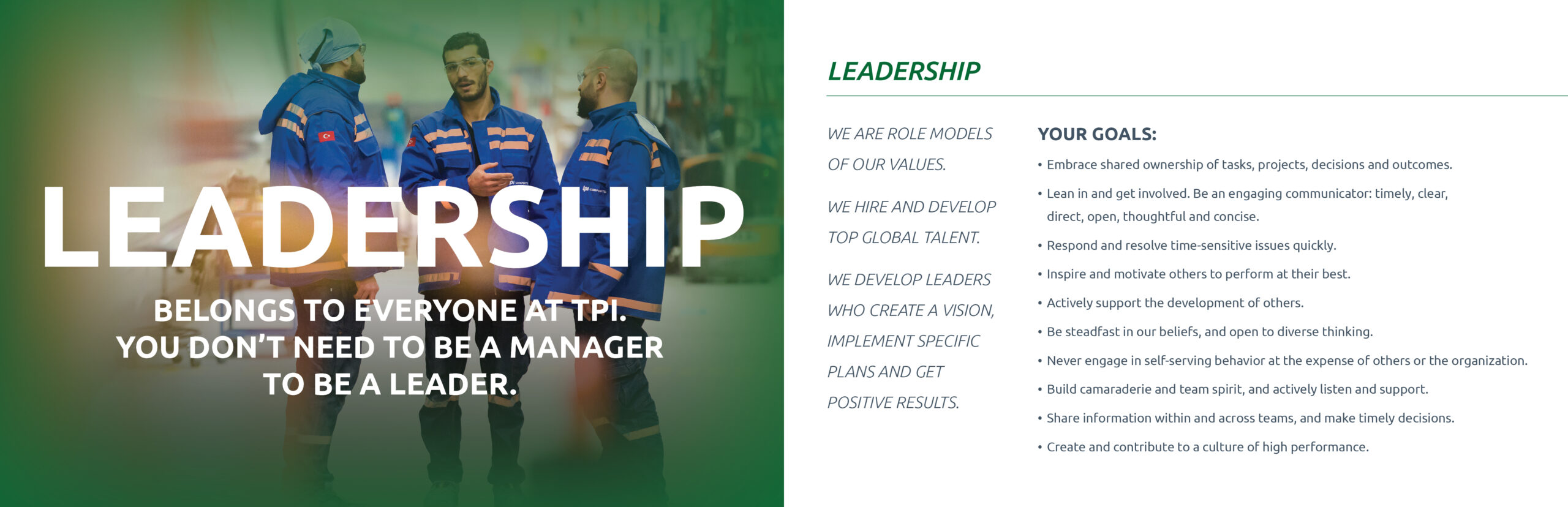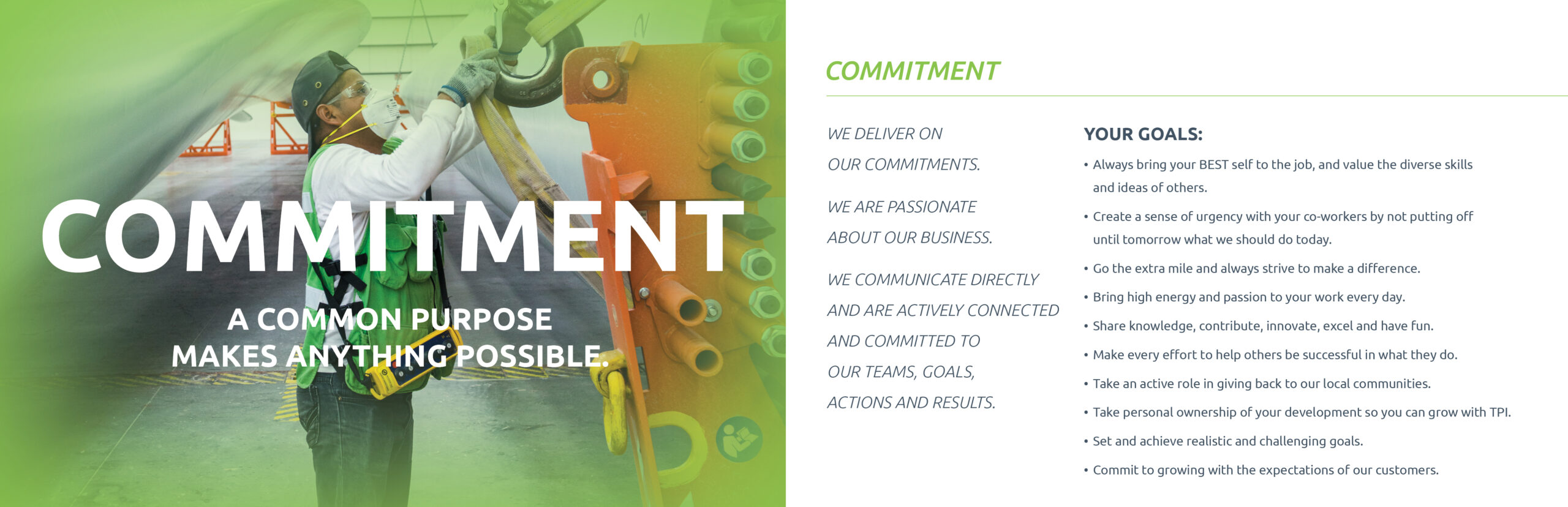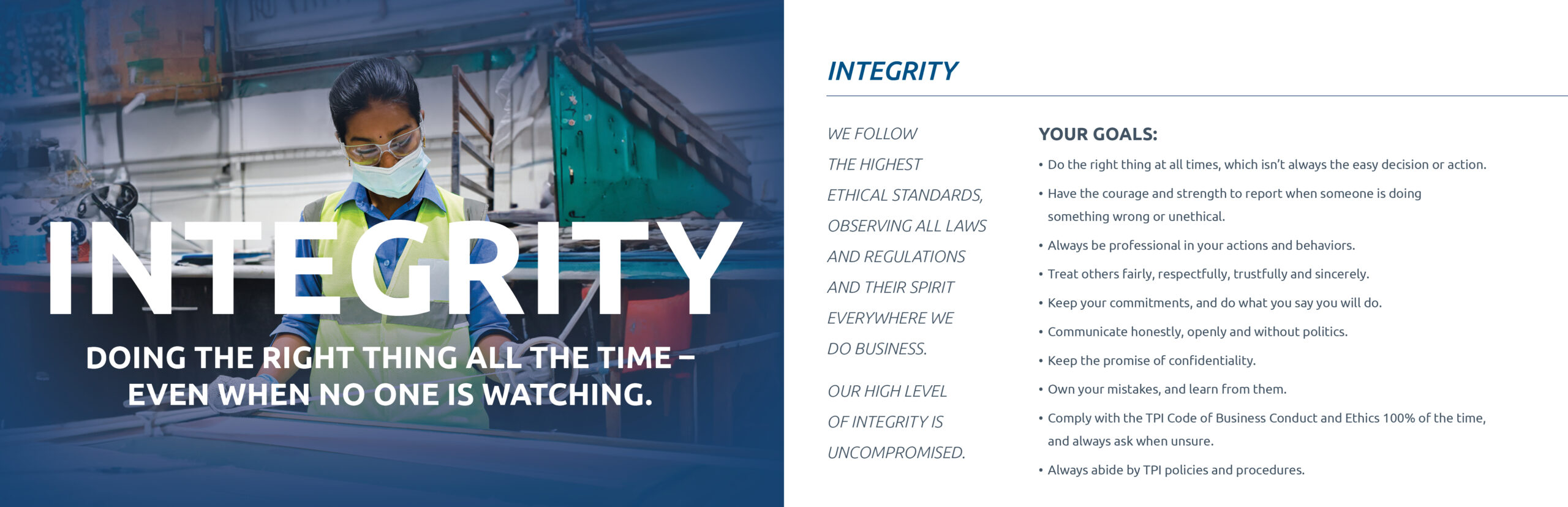 This represents the voice of our global associates and what each of the TPI Core Values means to them.