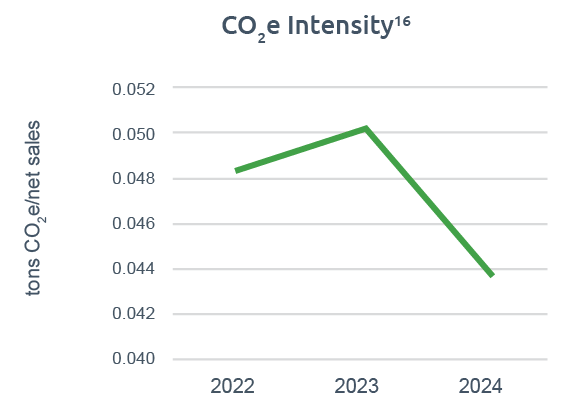 16 Defined as scope 1 and scope 2 location-based emissions divided by annual net sales including discontinued operations excluding field service sales.